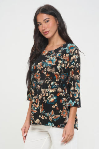 Product Description: Stylish and practical, this Print Quarter Sleeve Top is designed for women who want effortless fashion. Its quarter sleeves and flowing fit create a flattering silhouette, while the charming lettuce-edge hem brings playful movement. Made with a stretch fabric that resists wrinkles, this piece is ideal for work, weekends, or travel. It's a blend of form and function that always feels fresh.