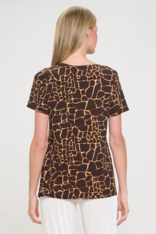 Hit Round Neck Short Sleeve Slit Top - Brown / S