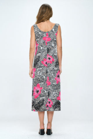 Product Description: The Bns Print Long Tank Dress combines effortless grace with comfort. Made from a soft polyester-spandex blend, it drapes beautifully and stretches to flatter your shape. The long silhouette and round neckline create a timeless look enhanced by a variety of bold prints. Perfect for sunny days or layered evenings, it’s a versatile piece for any season. Proudly made in the USA, this dress offers easy elegance from day to night.