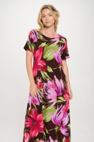 Product Description: The Print BNS Long Dress delivers classic comfort with modern versatility. Featuring a soft round neckline and a figure-skimming cut, this dress is ideal for everything from casual outings to travel days. Made with a wrinkle-resistant, stretch fabric blend, it offers a smooth drape and polished look all day long. With its easy-care design, this USA-made dress is a practical and stylish wardrobe staple.