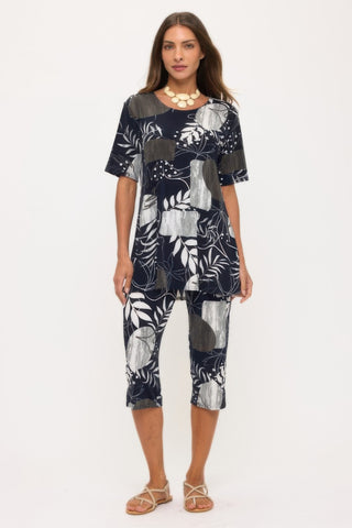 Product Description: Perfectly coordinated and easy to wear, the Print BNS Capri Pants Set blends comfort with everyday practicality. The lightweight top features short sleeves and a round neckline, while side vents offer relaxed movement throughout the day. The pull-on capri pants have an elastic waistband, making them ideal for quick, comfortable dressing. Designed in a soft stretch fabric with a fun, allover print, this set keeps you looking and feeling your best. It's a simple, go-to solution for casual days, travel, or lounging in style.