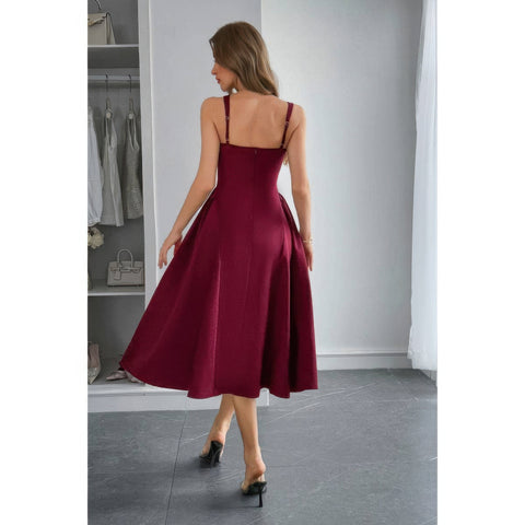 Product Description: This elegant sleeveless A-line dress blends modern minimalism with classic sophistication. The square neckline beautifully frames the shoulders, while the pleated detailing adds graceful movement with every step. Made from a soft polyester-elastane blend, it offers a comfortable stretch fit that flatters every body type. Ideal for brunches, garden events, or evening gatherings, this long dress transitions seamlessly from day to night. Its timeless design ensures you’ll reach for it season after season.
