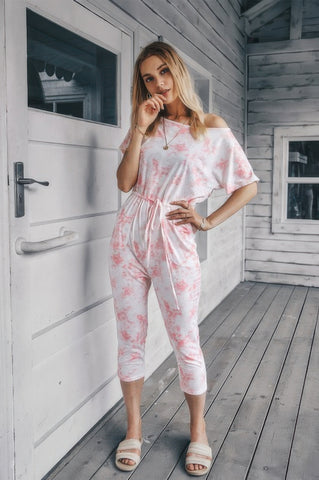 Tie Dye One Shoulder Drawstring Fit Jumpsuit Sale