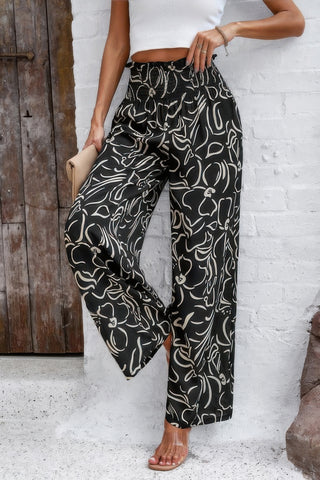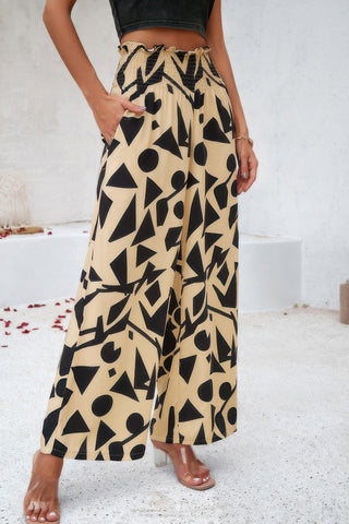 Allover Print Folded Frill Wide Leg High Waist Pant
