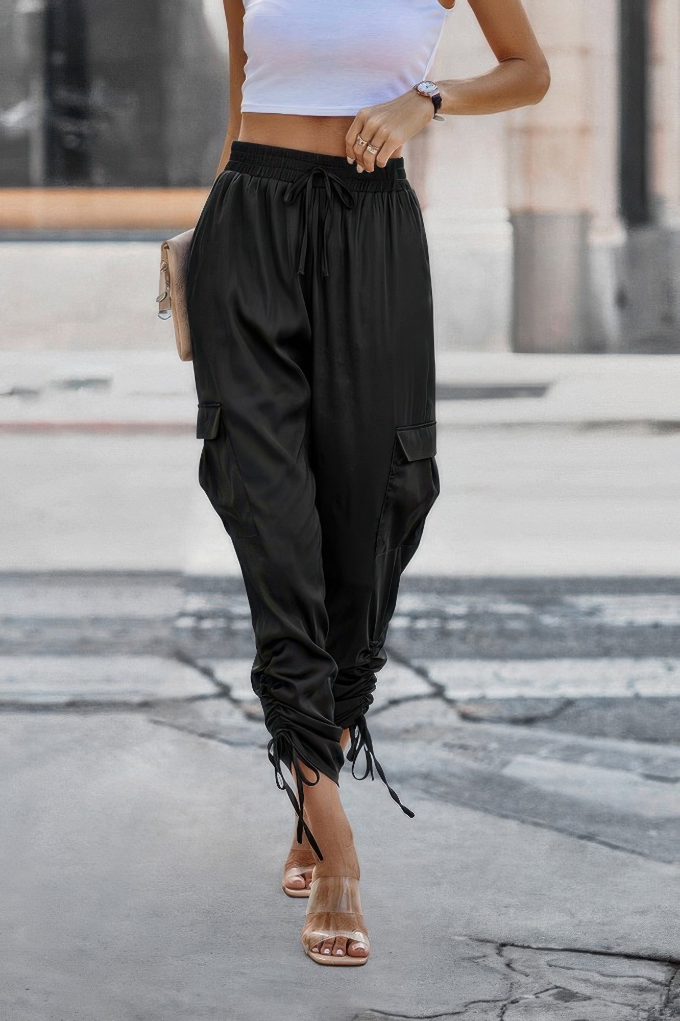 Solid Drawstring Hem Flap Pocket Side Stacked Pant Sale