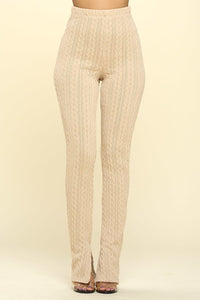 Made In U.S.A S.M.L Solid. Knit. High Rise. Leggings. Slit Hem 96% Polyester 4% Spandex Oatmeal WIN