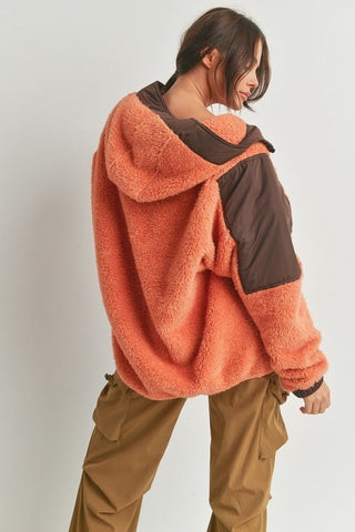 ImportedS.M.LTwo-toned cozy Hooded Sweater100% Polyester Orange/Brown WIN