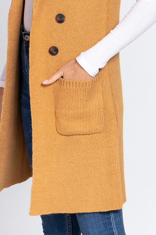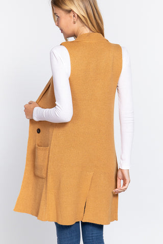Imported S.M.L SLEEVELESS NOTCHED COLLAR WITH SIDE POCKET LONG SWEATER VEST 78% Acrylic 15% Nylon 7% Polyester Honey ACT