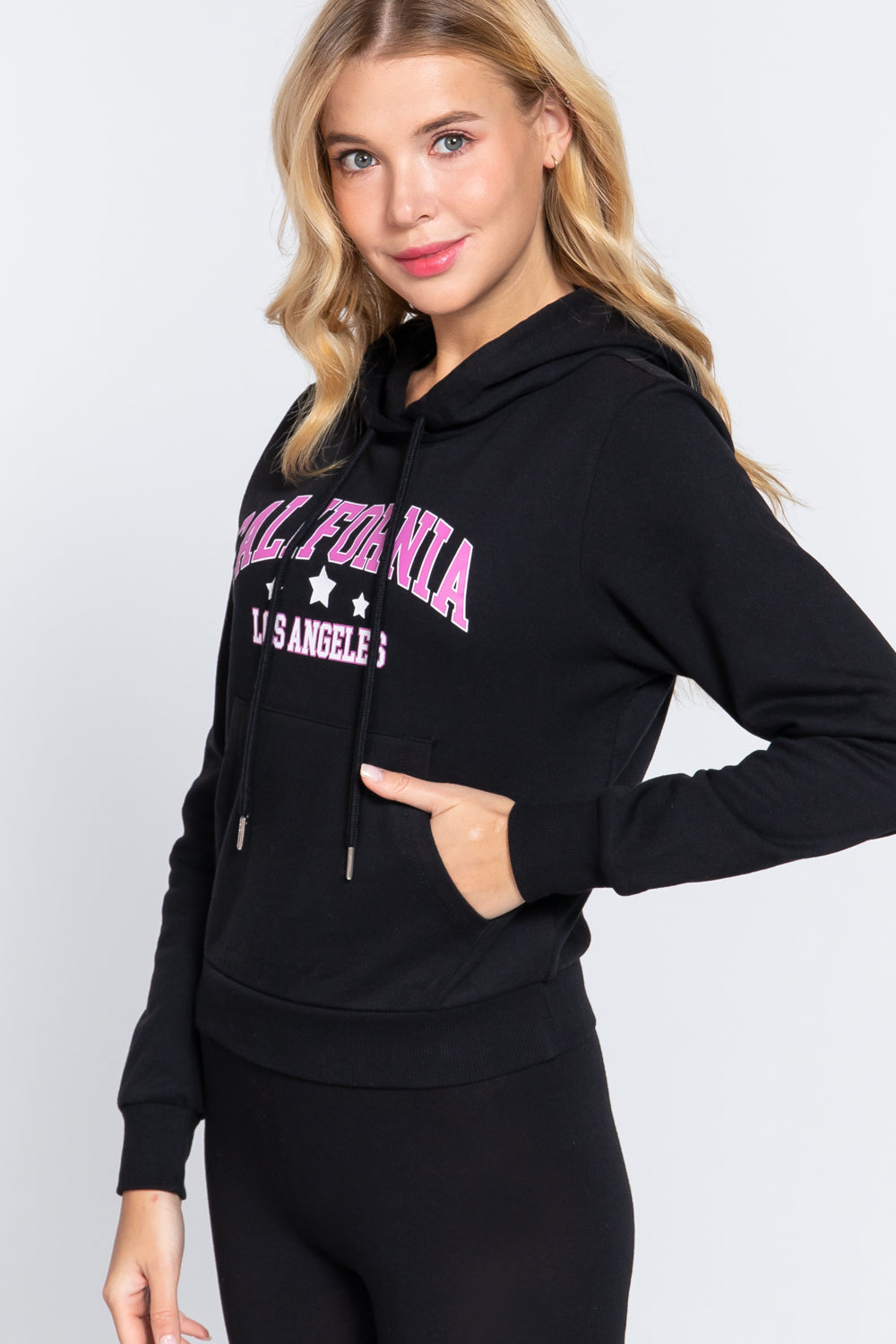 Imported S.M.L LONG SLEEVE HOODIE w/DRAWSTRING SCREEN PRINT FRENCH TERRY TOP 60% Cotton 40% Polyester Black ACT