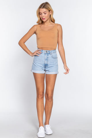 Imported S.M.L SLEEVELESS DOUBLE SCOOP NECK TWO PLY RAYON SPANDEX CROP KNIT TOP 95% Rayon 5% Spandex Honey ACT