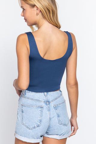 Imported S.M.L SLEEVELESS DOUBLE SCOOP NECK TWO PLY RAYON SPANDEX CROP KNIT TOP 95% Rayon 5% Spandex Midnight Blue ACT