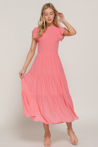 Ruffle Slv Smocked Solid Tired Dress Sale