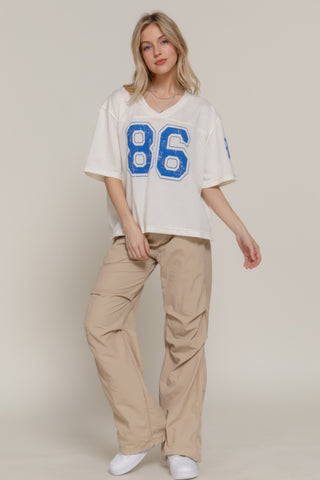Silk Screen Print Mesh Oversize Basball T-shirt - S