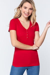 Imported S.M.L SHORT SLV V-NECK HENLEY KNIT TOP 95% Polyester 5% Spandex Bold Red ACT
