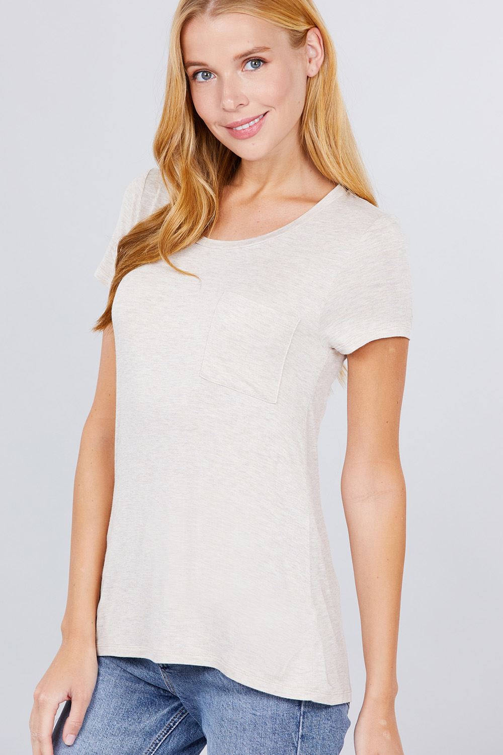 Inform when this item available: Short Sleeve Scoop Neck Top With Pocket - S