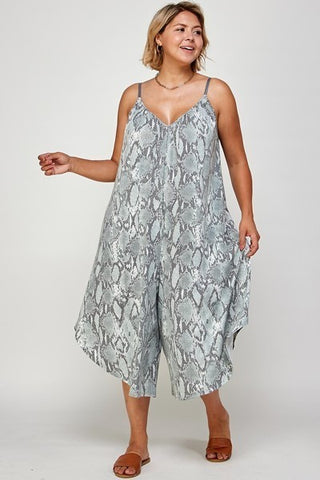 Plus Size Snakeskin Cropped Wide Leg Jumpsuit Sale