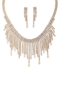 Imported RHINESTONE CRYSTAL BAGUETTE FRINGE NECKLACE AND EARRING SET Gold.Silver FBJ
