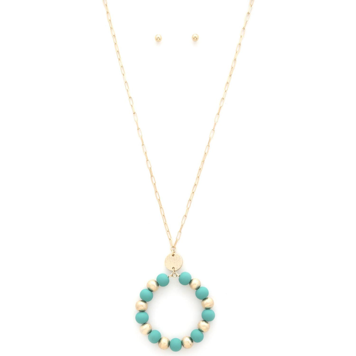 Imported SATIN BALL ACCENT CLAY BEAD ROUND PENDANT NECKLACE Pink.Blue.White.Green FBJ