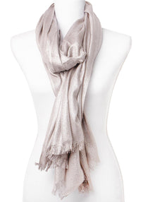 Imported SMOOTH GLITTER TEXTURE FRINGE LT BROWN SCARF Light Brown FBJ