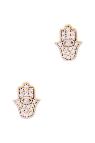 Imported TRENDY HAMSA HAND RHINESTONE STUD EARRINGGold.Rhodium FBJ