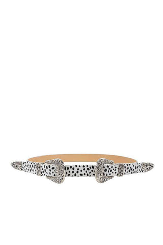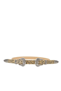 Imported TRENDY STYLISH LEOPARD DOUBLE BUCKLE BELT Beige.White FBJ