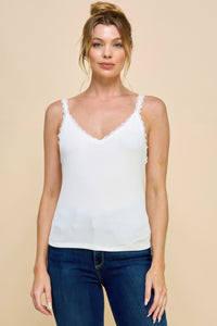 Ribbed V-neck Lace Trim With Strap Tank Top