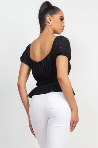 Puff Sleeve Eyelet Peplum Top