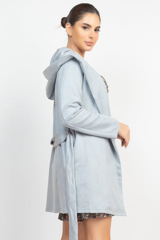 Suede Hooded Waist-tie Belt Jacket