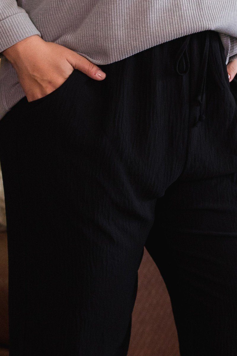 Imported1XL.2XL.3XLSolid Trousers Woven Elastic Waistband pants with drawstrings details100% Polyester Black ODD
