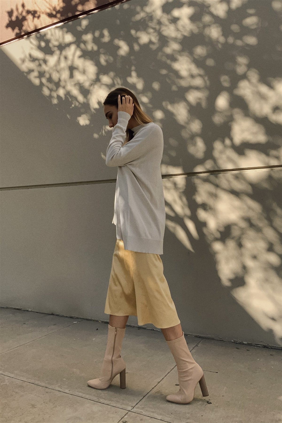 Imported S.M.L satin, ruffle waist, hidden side zipper, slight v-cut, summer, skirt, midi length, solid, chic, vintage, retro, boho, unlined, some stretch.. 92% Polyester 8% Spandex Gold TSH