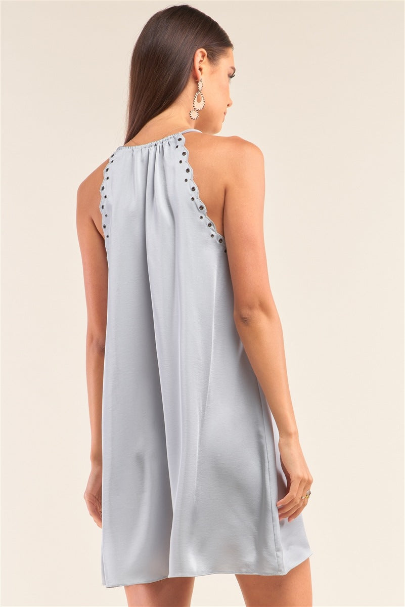 Silver Dust Satin Front Lace Up Grommet Studded Mini Dress Sale