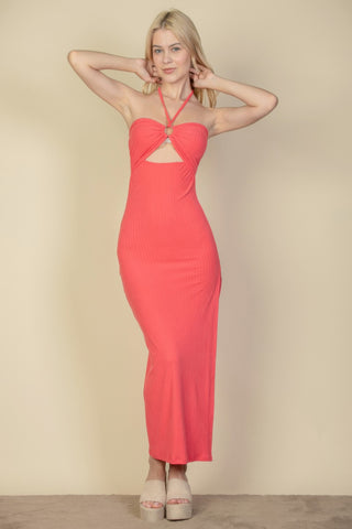 Ribbed Cut Out Front Side Slit Maxi Dress