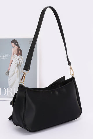This shoulder bag combines a stylish, playful bow detail with a versatile and practical design. Available in four stunning colors, it effortlessly complements both casual and dressy outfits. Its smooth satin texture and attention to detail make it a statement piece for any occasion.