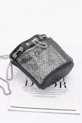 Fabric: Crafted from high-quality rhinestones, polyurethane, and mixed metal accents, this bag features a shimmering mesh design that catches the light from every angle.