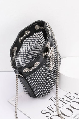 Discover the Rhinestone Mesh Tube Bag, where sophistication meets modern style. This black mesh bag, featuring a chic chain strap and embellished with dazzling rhinestones, is the ideal accessory for any occasion. Designed , this unique creation effortlessly combines glamour and practicality, making it the perfect addition to your collection.