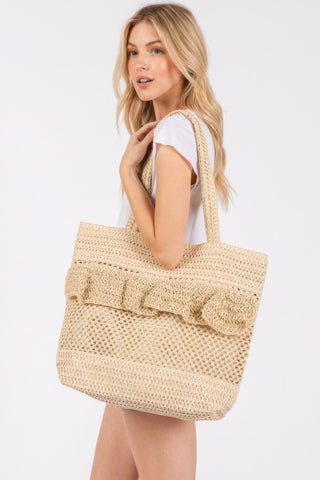 Add the Ruffle Detail Crochet Straw Bag to your cart today and enjoy a stylish and functional accessory that will complement your wardrobe for seasons to come!