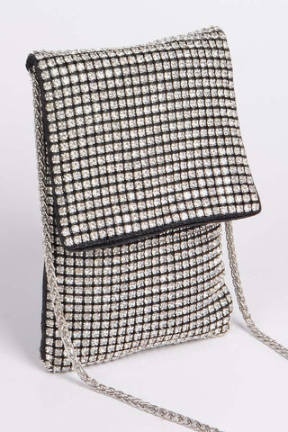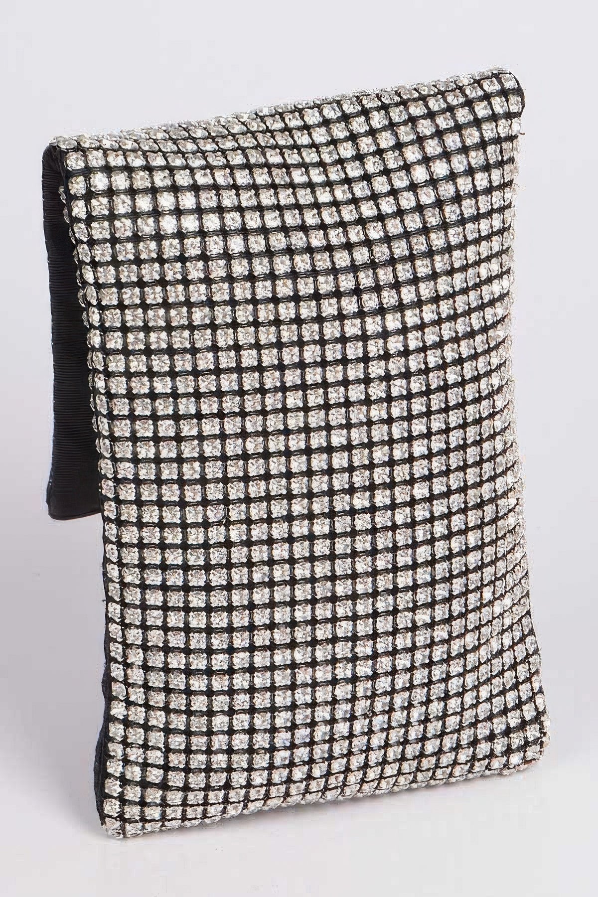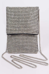 Product Description: Turn up the glamour with the Rhinestone Rectangular Clutch, a dazzling accessory designed to make a lasting impression. This oversized black clutch is adorned with shimmering rhinestones that catch the light from every angle, offering the perfect mix of elegance and edge. Its sleek rectangular shape and compact size make it ideal for evening events, parties, or any moment that calls for a standout finishing touch. Crafted from durable polyurethane and covered in radiant detail, this clutch brings sophistication to every ensemble.