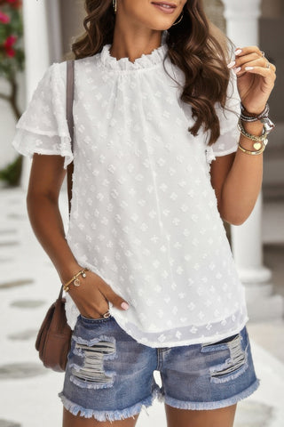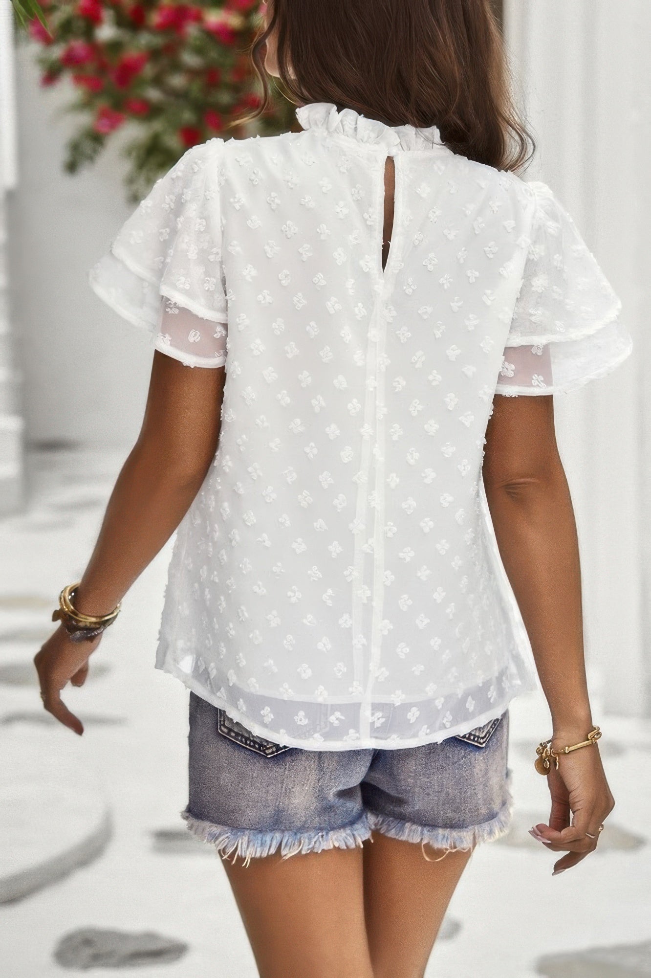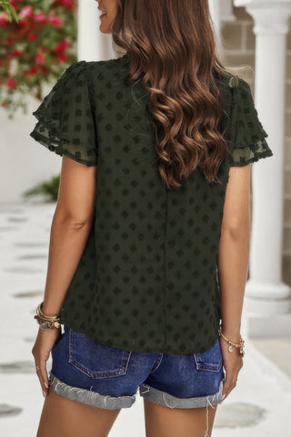 Product Description: This solid layered short sleeve polka dot shirt brings a fresh and fun look to any outfit. Crafted from 100% polyester, it’s lightweight and easy to wear, making it a perfect choice for everyday style. The layered short sleeves add a touch of playfulness, while the polka dot pattern brings a lively feel to your ensemble. The relaxed fit ensures all-day comfort, whether you’re heading to school, out with friends, or simply enjoying the day. Pair it with jeans or shorts for a casual yet polished appearance.