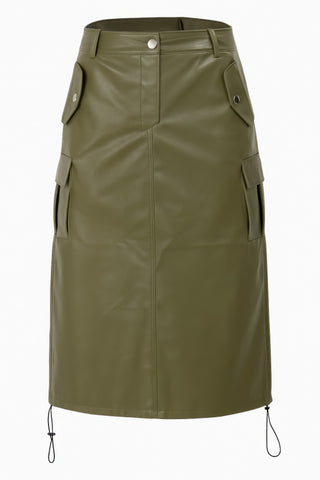 Product Description: Bold and refined, this PU Side Pockets Midi Skirt brings sleek structure to any look. Crafted from high-shine PU fabric, it features a classic midi length with a button-front design for a touch of edge. Functional side pockets add a utilitarian element, while the adjustable bottom hem lets you customize the silhouette to suit your style. The polyester-spandex blend provides a flexible fit with subtle structure, making it as comfortable as it is statement-making. Perfect for pairing with fitted tops, boots, or blazers for an elevated finish.