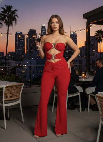 Cut-out,strapless Jumpsuit That Flares Out Sale
