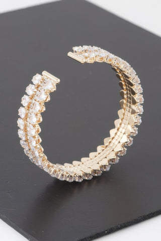 Double Jeweled Cuff Bracelet - Gold Clear