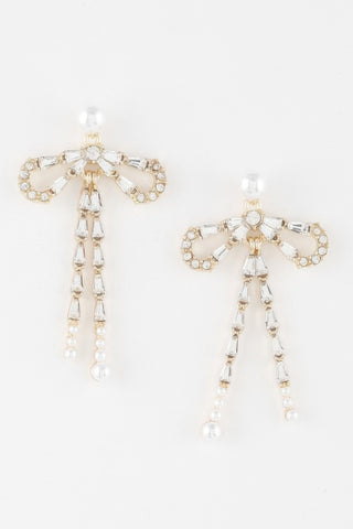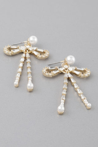 Crystal Pearl Ribbon Earrings - Gold Cream
