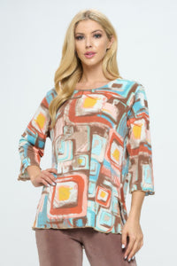 Product Description: This Bns Print Missy Top offers a flattering cut with standout detail, thanks to its 3/4 sleeves and merrow-stitched hem. The soft round neckline and relaxed silhouette make it an easy favorite for work or play. Each print is thoughtfully placed, giving every piece a unique character. Lightweight and breathable, it’s ideal for layering or wearing on its own. Made in the USA with comfort and versatility in mind.