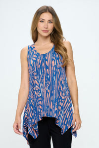 Product Description: The Hit Handkerchief Hem Tank features a flowy asymmetrical hem that adds a modern twist to your warm-weather wardrobe. Made from lightweight stretch fabric, it moves freely and flatters with every step. The sleeveless cut and smooth finish make it ideal for layering or wearing on its own. With a hint of drape and plenty of comfort, it’s a standout option for casual or elevated looks. Made in the USA.