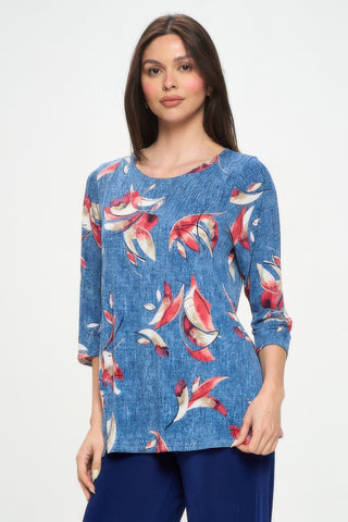 Product Description: The HIT Round Neck 3/4 Sleeve Slit Top blends comfort and structure with effortless style. Crafted from a smooth stretch fabric, this USA-made top features a classic round neckline, 3/4 length sleeves, and subtle side slits for a flattering fit. Whether layered or worn on its own, it’s a versatile go-to for polished everyday looks.