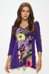 Product Description: This V-neck contrast top brings a polished touch to everyday style. The neckline is framed by binding detail, while the contrast print adds visual depth. Made from a stretch-rich fabric blend, it moves with you comfortably throughout the day. Whether for layering or solo wear, it’s an easy choice for versatile style. Made in the USA.