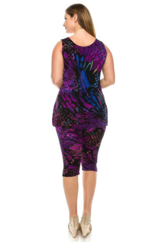 Product Description: Stay stylish and comfortable in this coordinated tank top and capri pants set. The round neck tank offers a relaxed fit, while the matching capris feature soft stretch for easy movement. With a range of vibrant prints to choose from, this set brings personality to your everyday routine. The breathable fabric is ideal for lounging, errands, or warm-weather outings. Proudly made in the USA, it’s a go-to choice for effortless dressing.
