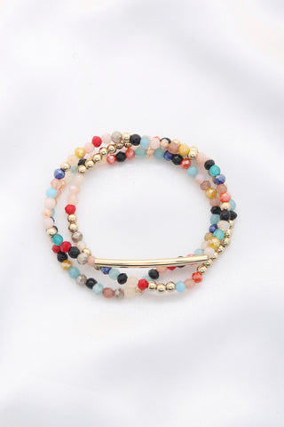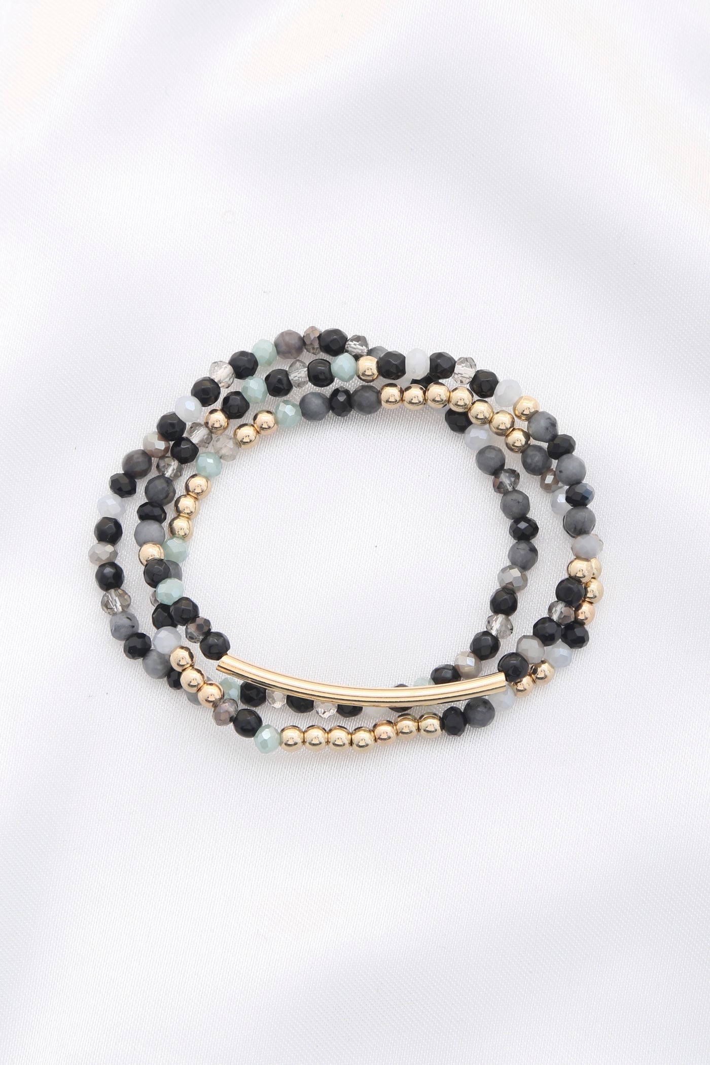 Imported3 ROW GLASS BEAD STRETCH BRACELETMulti.Blue.BlackFBJ