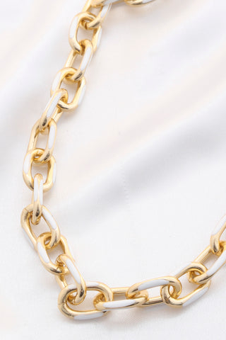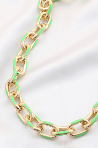 Imported COLOR METAL OVAL LINK NECKLACE Blue.Green.Pink.White.Fuchsia FBJ