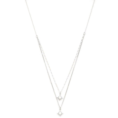 Imported DOUBLE STAR CRYSTAL LAYERED NECKLACE Gold.Rhodium FBJ